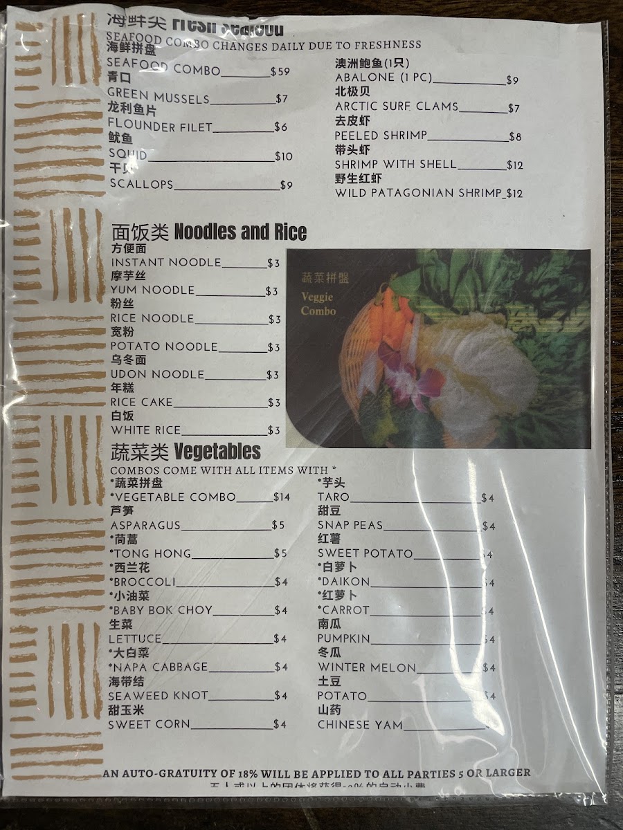 Tong Hong, Broccoli, Baby Bok Choy, Napa Cabbage, Potato, & Carrot